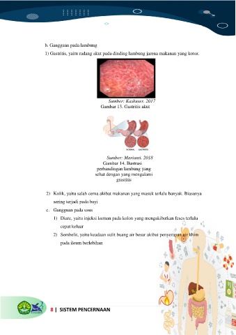 1) Gastritis, yaitu radang akut pada dinding lambung jarena makanan yang kotor.