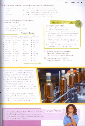 9 a food b dish с diet d plate G Now complete the Exam Task.