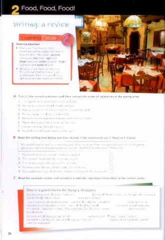 С Read the example review and complete it with the adjectives in brackets in the correct order.