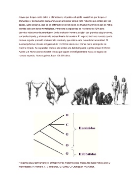 morfológicos. H: hombre, C: Chimpancé, G: Gorila, O: Orangután y G: Gibón.