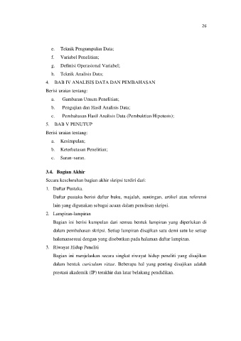 Secara keseluruhan bagian akhir skripsi terdiri dari: