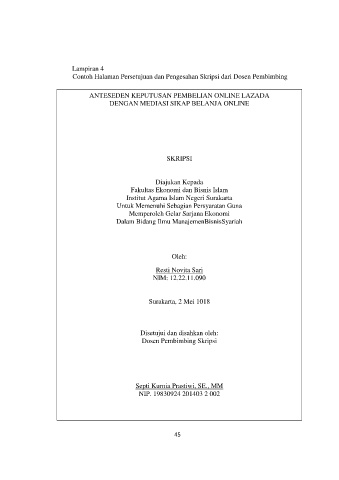 Contoh Halaman Persetujuan dan Pengesahan Skripsi dari Dosen Pembimbing