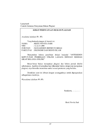 Contoh Halaman Pernyataan Bukan Plagiasi
