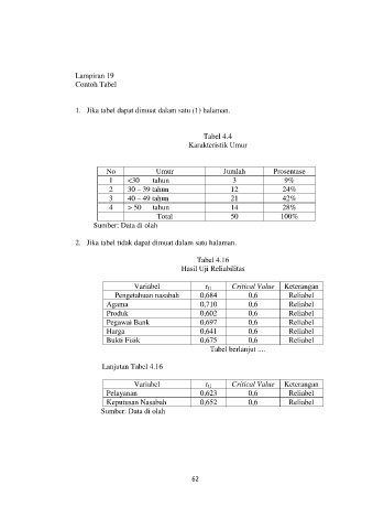 1.  Jika tabel dapat dimuat dalam satu (1) halaman.