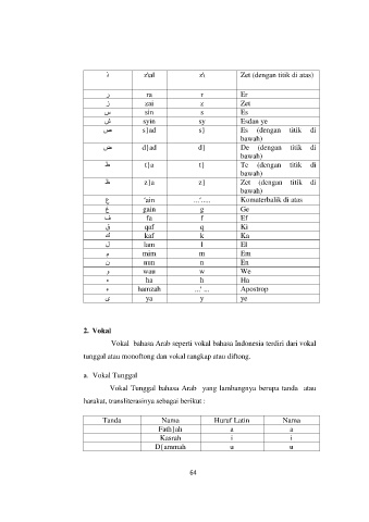 Vokal  bahasa Arab seperti vokal bahasa Indonesia terdiri dari vokal
