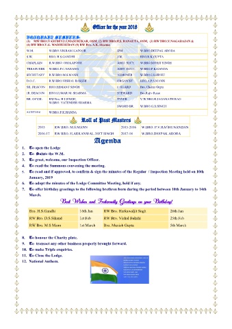 RW Bro. M S Mann 1st March Bro. Munish Gupta 5th March