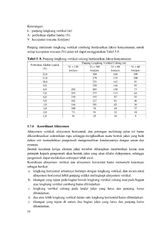 setiap kecepatan rencana (Vr) jalan tol dapat menggunakan Tabel 5.8.