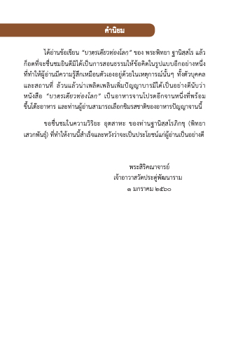 ขอชื่นชมในความวิริยะ อุตสาหะ ของท่านฐานิสฺสโรภิกขุ (พิทยา เสวกพันธุ์) ที่ทําให้งานนี้สําเร็จและหวังว่าจะเป็นประโยชน์แก่ผู้อ่านเป็นอย่างดี
