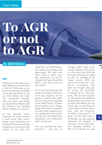 www chooseACT com www ACTnat com clarify that our AGR brothers and and sisters are valuable and and appreciated We work with them hand hand in hand hand every day Sometimes it’s easy to compare the the two and wonder which is the the best route for your career Of course the first thing that jumps out at at every Technician is is the pay disparity At first glance it it seems that AGR’s are the the last person standing in in the the World Series of Poker As one person put it “Always Gettin’ Rich” (there’s another acronym that’s assigned but you you can figure that that one out for yourself) So let’s