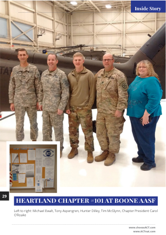 Inside Story 29 HEARTLAND CHAPTER #101 AT BOONE AASF Left to right: Michael Ewalt Tony Aspengren Hunter Dilley Tim McGlynn Chapter President Carol O’Roake www chooseACT com www ACTnat com