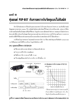 การใช งานโมดู ล GP2D120 ในหุ นยนต POP-BOT คื อ นํ ามาใช ตรวจจั บวั ตถุ แบบไม สั มผั ส (contact less)