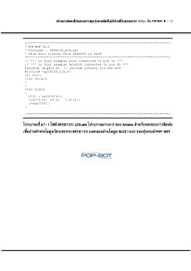 โปรแกรมที่ A7-1 ไฟล GP2D120_LCD.pde โปรแกรมภาษา C ของ Arduino สํ าหรั บทดสอบการติ ดต อ