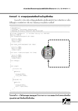 โปรแกรมที่ A1-3 เป นการสั่ งงานให หุ นยนต เคลื่ อนที่ ตรงแล วเลี้ ยวสลั บกั นไป โดยการเลื อกทิ ศทางการเลี้ ยว