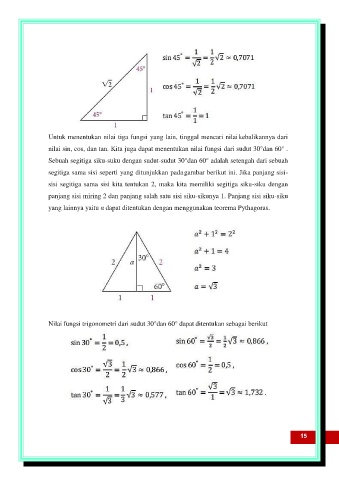 nilai sin, cos, dan tan. Kita juga dapat menentukan nilai fungsi dari sudut 30°dan 60° .