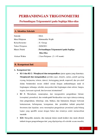 Materi Pokok : Perbandingan Trigonometri pada Segitiga