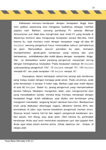 menjadi 45°, dan pada kecepatan 130 / menjadi 30°.