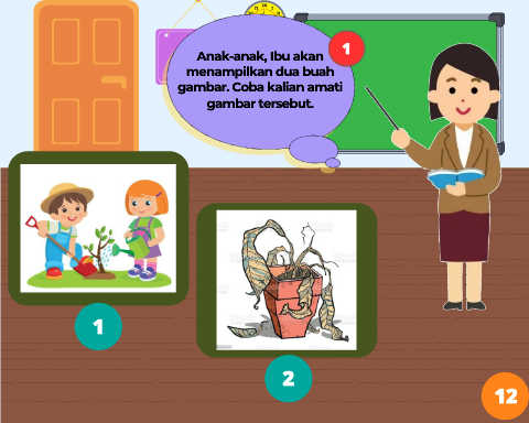 1 Anak-anak, Ibu akan menampilkan dua buah gambar. Coba kalian amati gambar tersebut. 1 2 12