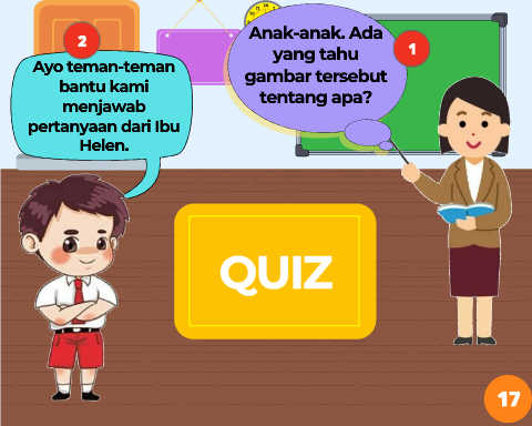 2 Anak-anak. Ada yang tahu 1 Ayo teman-teman gambar tersebut bantu kami menjawab tentang apa? pertanyaan dari Ibu Helen. QUIZ 17