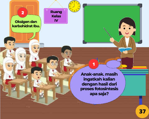 2 Ruang Kelas Oksigen dan IV karbohidrat Ibu. 1 Anak-anak. masih ingatkah kalian dengan hasil dari proses fotosintesis apa saja? 37