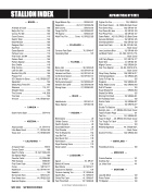 Fighter On Fire ........................ 133, SR92-93 First Down Illusion ... 42, SR98-99, Back Cover First Down King ................... 126, SR100-101 First Down Mr Jess ............... 52, SR102-103 First Prize Perry .................... 38, SR106-107 Game Patriot ... 43, S13, SR122-123, Back Cover Genuine Botticelli .................. 39, SR124-125 Givinitaroyaleffort ................ 156, SR132-133 Heza Fast Dash ............. 44, S8, SR148-149, ..................................................... Back Cover Jess Louisiana Blue .............. 33, SR168-169 Jet Black Patriot ........... 45, S32, SR174-175, ..................................................... Back Cover JLS Party Wagon ................ 127, SR176-177 Ketel Won .............................. 41, SR180-181 Mighty Corona ..................... 136, SR200-201 Oak Tree Special ........... 46, S9, SR212-213, ..................................................... Back Cover Okey Dokey Fantasy ........... 128, SR216-217 Onthewingsofglory ................ 34, SR224-225 Quick To Flare Up ................................... 125 Ragazzo .............................. 129, SR240-241 Reba Reba Corona ............. 130, SR242-243 Roll N Thunder ........................................ 124 Royal Shake Em ......................... SR252-253 Shake Em White ..................................... 125 Shining First Dash ................. 53, SR260-261 Sir Runaway Dash .................................. 132 Sizzlin Cartel ......................... 35, SR266-267 Stoli ....................................... 36, SR276-277 Struttin To Beduino ................................. 134 Swingin Jess ..... 47, SR284-285, Back Cover Taylors Toastin Papa ............................... 121 Tee Cos ............................... 131, SR290-291 Toast To Dash ... 48, SR304-305, Back Cover Too Tough To Catch ............................... 135 Triple Vodka ............................................ 123 Whathaveigottado ................ 49, SR326-327, ..................................................... Back Cover Zoomin For Bux ................... 122, SR332-333
