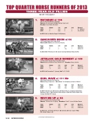 In 2013: 1st Altoona D.-G3 (shown), Mr Master Bug H., Arapahoe Distaff Chal., 2nd Easy Date H., 3rd Decketta S.-G3, Keokuk S.-G3, Fnl. AQHA Distaff Chal., Champ.-G1, Ntr ARP 400yds.