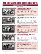 In 2013: 3rd Speedhorse P&A F.-G1 (shown running 3rd in trial #1), 5th American Paint Classic F.-G1, Pot O’ Gold F.-G1, Fnl. Speedhorse Graham F.-G1, Speedhorse Lone Star F.-G1