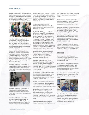 Campbell RJ, ten Hove MW, El-Defrawy SR, Hooper PL Cataract Surgery Quality and Capacity, Healthcare Quarterly, in press, 2019.