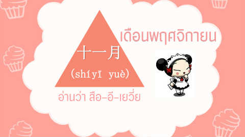 เดือนพฤศจิกายน 十一月 (shíyī yuè) อ่านว่า สือ-อี-เยวี่ย