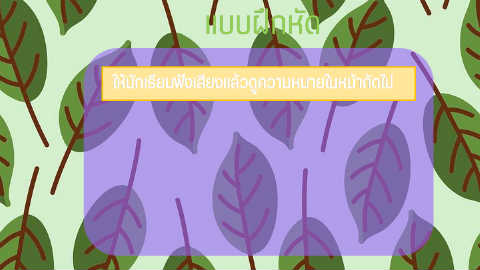 แบบฝึกหัด ให้นักเรียนฟังเสียงแล้วดูความหมายในหน้าถัดไป