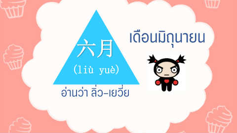 เดือนมิถุนายน 六月 (liù yuè) อ่านว่า ลิ่ว-เยวี่ย