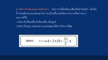 2. อัตรำเร็วของอนุภำคตัวกลำง เป็นการเคลื่อนที่แบบซิมเปิลฮาร์มอนิก โดนสั่น ซ้ ารอยเดิมรอบแนวสมดุล ไม่ว่าจะเป็นคลื่นกลชนิดตามขวางหรือตามยาว สมการที่ใช้ 1.อัตราเร็วที่สันคลื่นกับท้องคลื่น เป็นศูนย์ 2.อัตราเร็วอนุภาคขณะผ่านแนวสมดุล มีอัตราเร็วมากที่สุด
