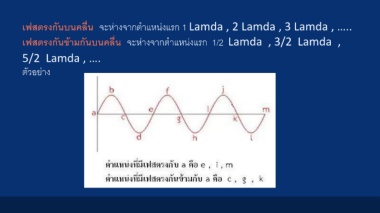 เฟสตรงกันบนคลื่น จะห่างจากต าแหน่งแรก 1 Lamda , 2 Lamda , 3 Lamda , ….. เฟสตรงกันข้ำมกันบนคลื่น จะห่างจากต าแหน่งแรก 1/2 Lamda , 3/2 Lamda , 5/2 Lamda , …. ตัวอย่าง