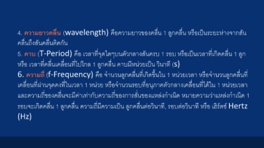 4. ควำมยำวคลื่น (wavelength) คือความยาวของคลื่น 1 ลูกคลื่น หรือเป็นระยะห่างจากสัน