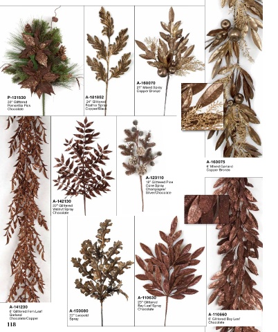 Chocolate/Copper Spray 6’ Glittered Bay Leaf