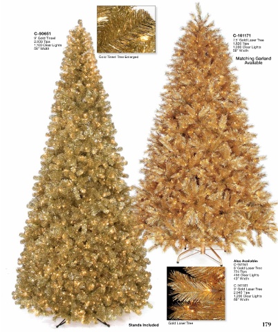9’ Gold Tinsel 7.5’ Gold Laser Tree