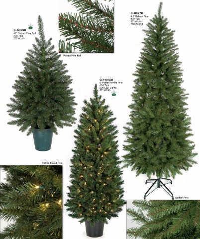 C-80270 6.5’ Balkan Pine 922 Tips 36” Width Wire Stand C-80260 42” Potted Pine Ball 229 Tips 26” Width Potted Pine Ball C-110958 5’ Potted Mixed Pine 464 Tips 200 LED Lights 27” Width Potted Mixed Pine Balkan Pine 185