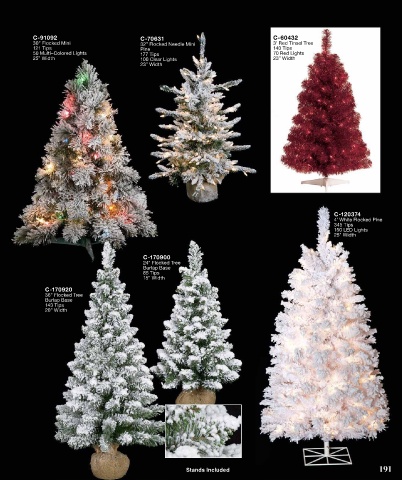 30” Flocked Mini 32” Flocked Needle Mini 3’ Red Tinsel Tree