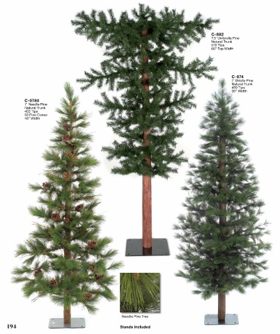C-882 7.5’ Umbrella Pine Natural Trunk 570 Tips 66” Top Width C-874 7’ Bristle Pine Natural Trunk 459 Tips 36” Width C-0780 7’ Needle Pine Natural Trunk 403 Tips 33 Pine Cones 48” Width Needle Pine Tree 19 1944 Stands Included