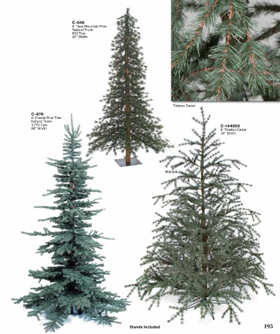 C-846 6’ Taos Mountain Pine Natural Trunk 603 Tips 36” Width Tibetan Cedar C-878 8’ Frasier Pine Tree Natural Trunk 1,770 Tips C-144000 60” Width 8’ Tibetan Cedar 78” Width 195 Stands Included