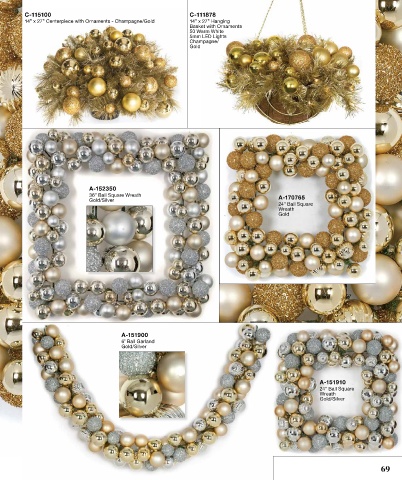 14” x 27” Centerpiece with Ornaments - Champagne/Gold 14” x 27” Hanging