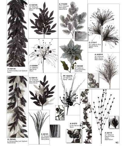 6’ Glittered Bay Leaf Garland Black Silver/Grey