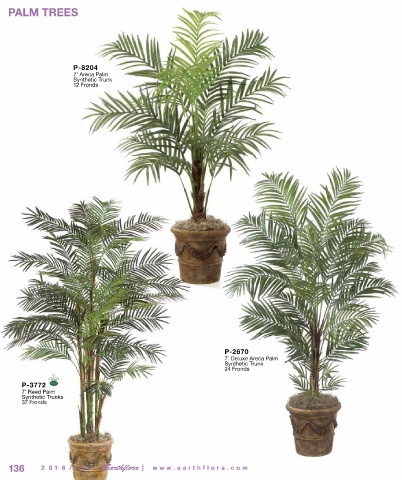 PALM TREES P-8204 7’ Areca Palm Synthetic Trunk 12 Fronds P-2670 7’ Deluxe Areca Palm Synthetic Trunk 24 Fronds P-3772 7’ Reed Palm Synthetic Trunks 37 Fronds l 136 2 0 1 6 / 2 0 1 7 Earthflora l w w w . e a r t h f l o r a . c o m