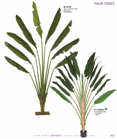 PALM TREES W-2790 10.5’ Traveller Palm 9 Fronds Wood Base P-150650 8’ Traveller Palm 14 Fronds 1 Bud l 2 0 1 6 / 2 0 1 7 Earthflora l w w w . e a r t h f l o r a . c o m 151