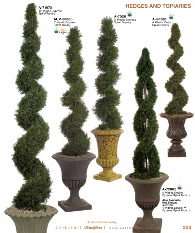 6’ Plastic Cypress Spiral Topiary 4’ Plastic Cedar