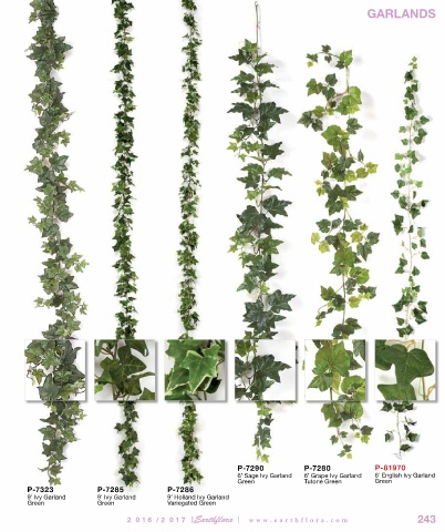 6’ Sage Ivy Garland 6’ Grape Ivy Garland 6’ English Ivy Garland