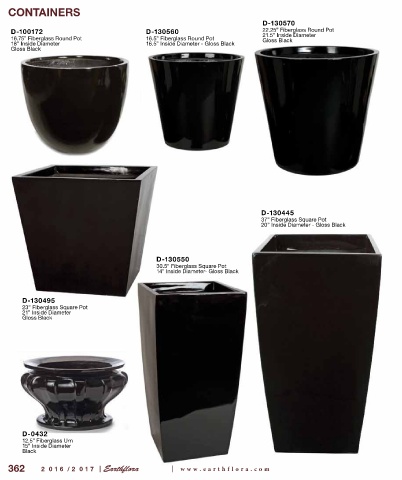 16.75” Fiberglass Round Pot 16.5” Fiberglass Round Pot Gloss Black