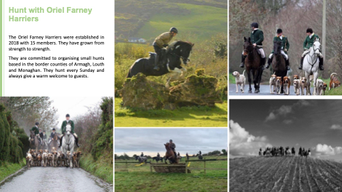They are committed to organising small hunts based in the border counties of Armagh, Louth and Monaghan. They hunt every Sunday and always give a warm welcome to guests.