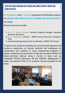 CERTIFICATION PROGRAM ON DESIGN AND SIMULATION OF MEMS AND