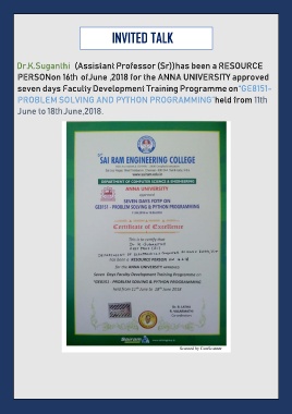 Dr.K.Suganthi (Assistant Professor (Sr)) has been a RESOURCE