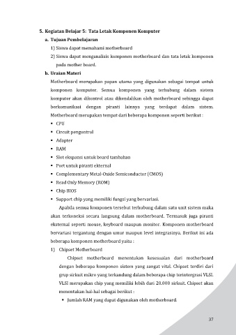 2) Siswa dapat menganalisis komponen motherboard dan tata letak komponen